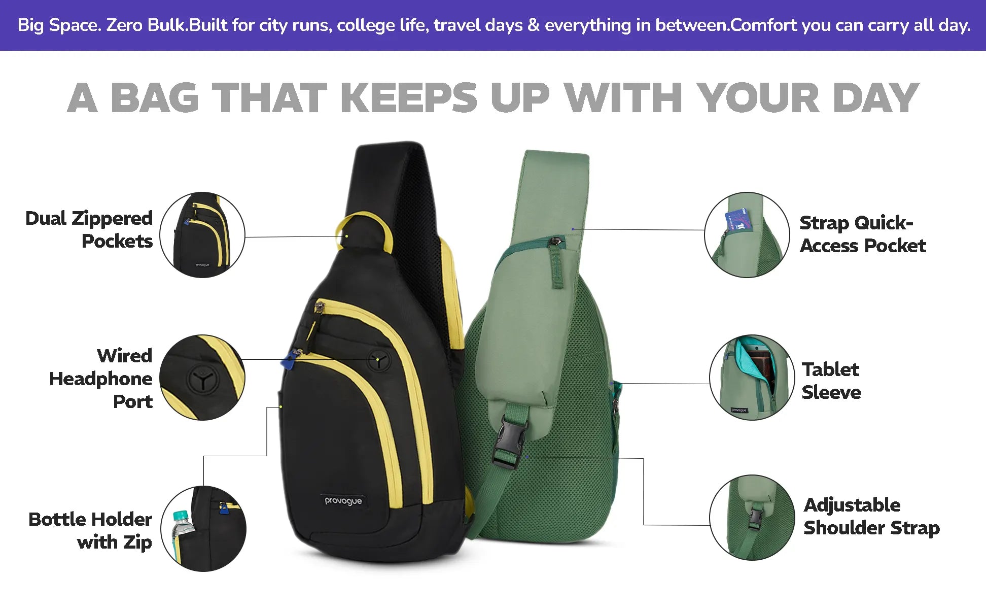 A sleek one-shoulder sling for men and women — perfect for travel, college, office commutes, cycling, or daily city runs.