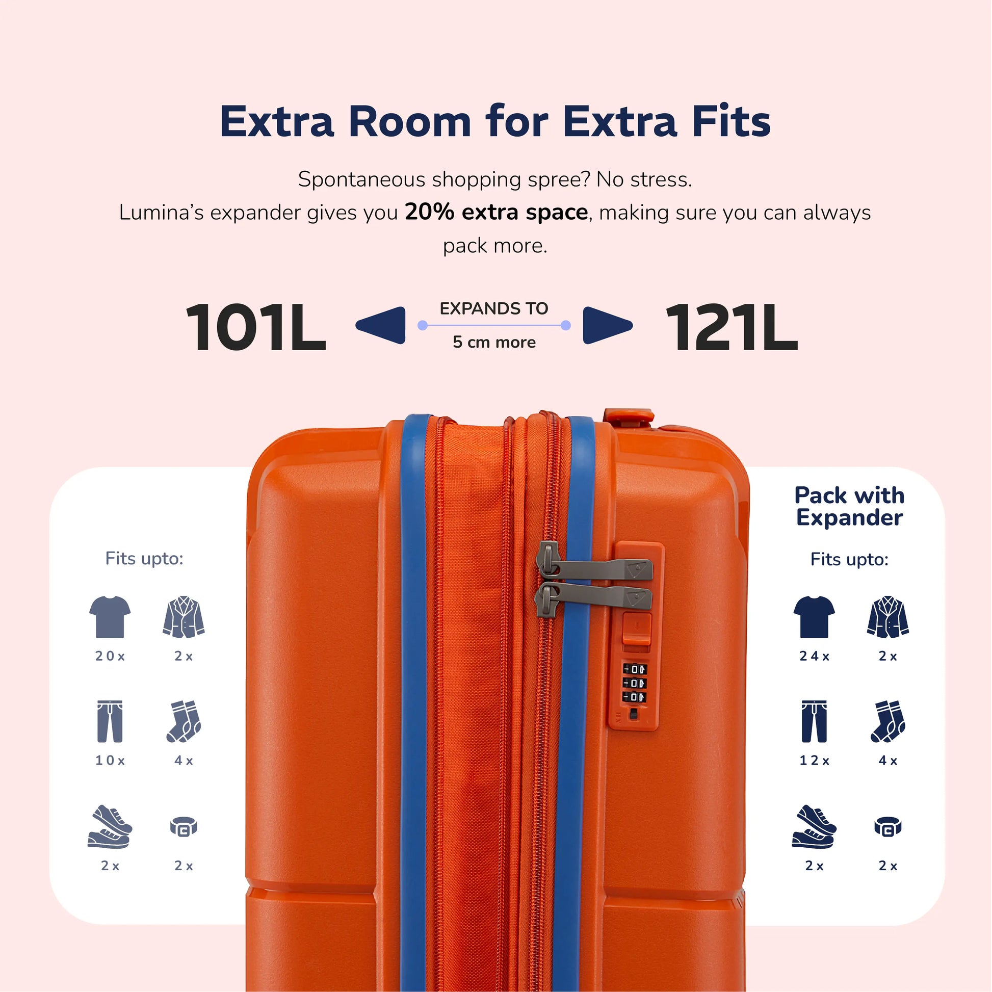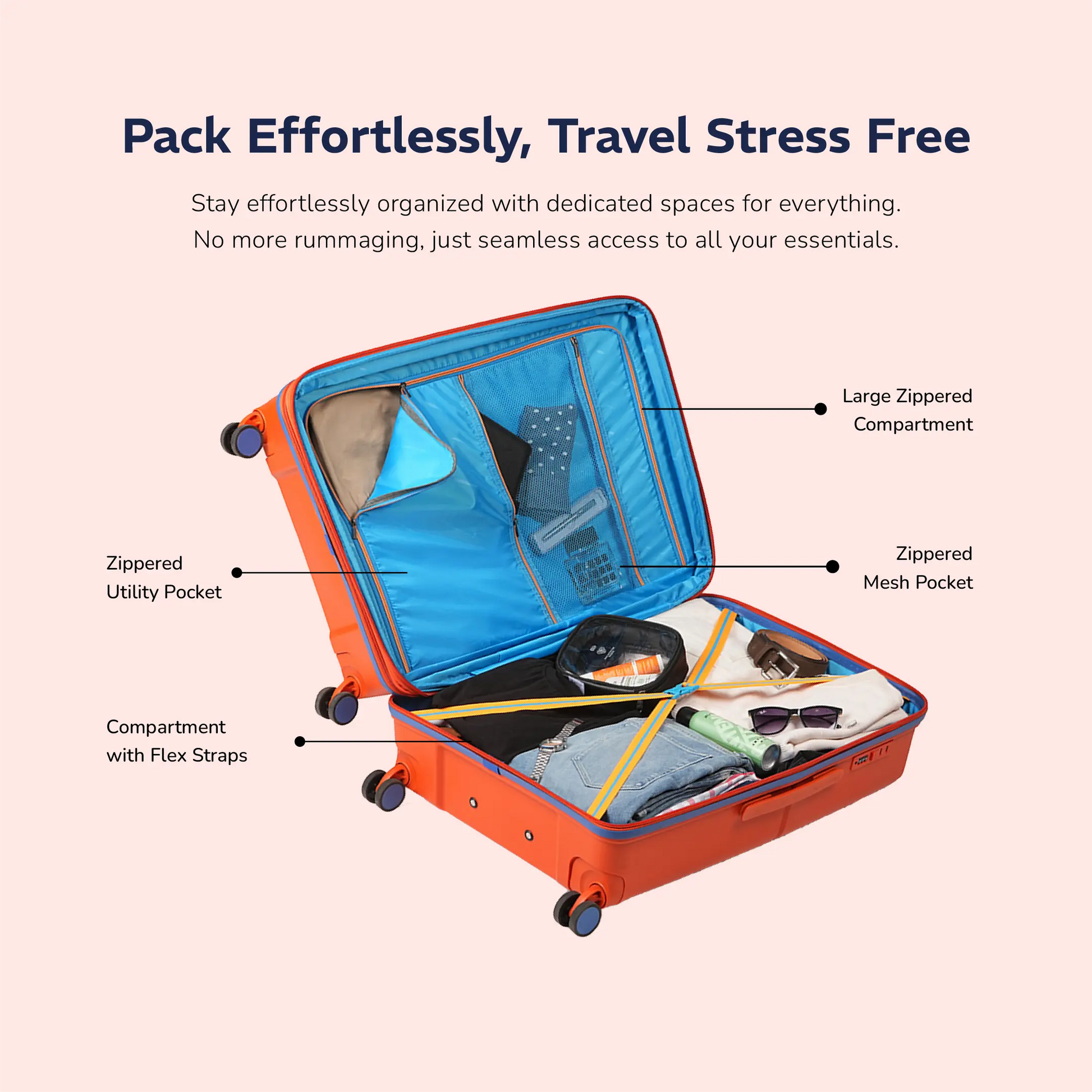 Expandable Storage – Need extra luggage space? Our expandable luggage provides additional room for your essentials without compromising on convenience. Get up to 20% more capacity by unzipping the expander as needed, making our trolley bags perfect for any journey.