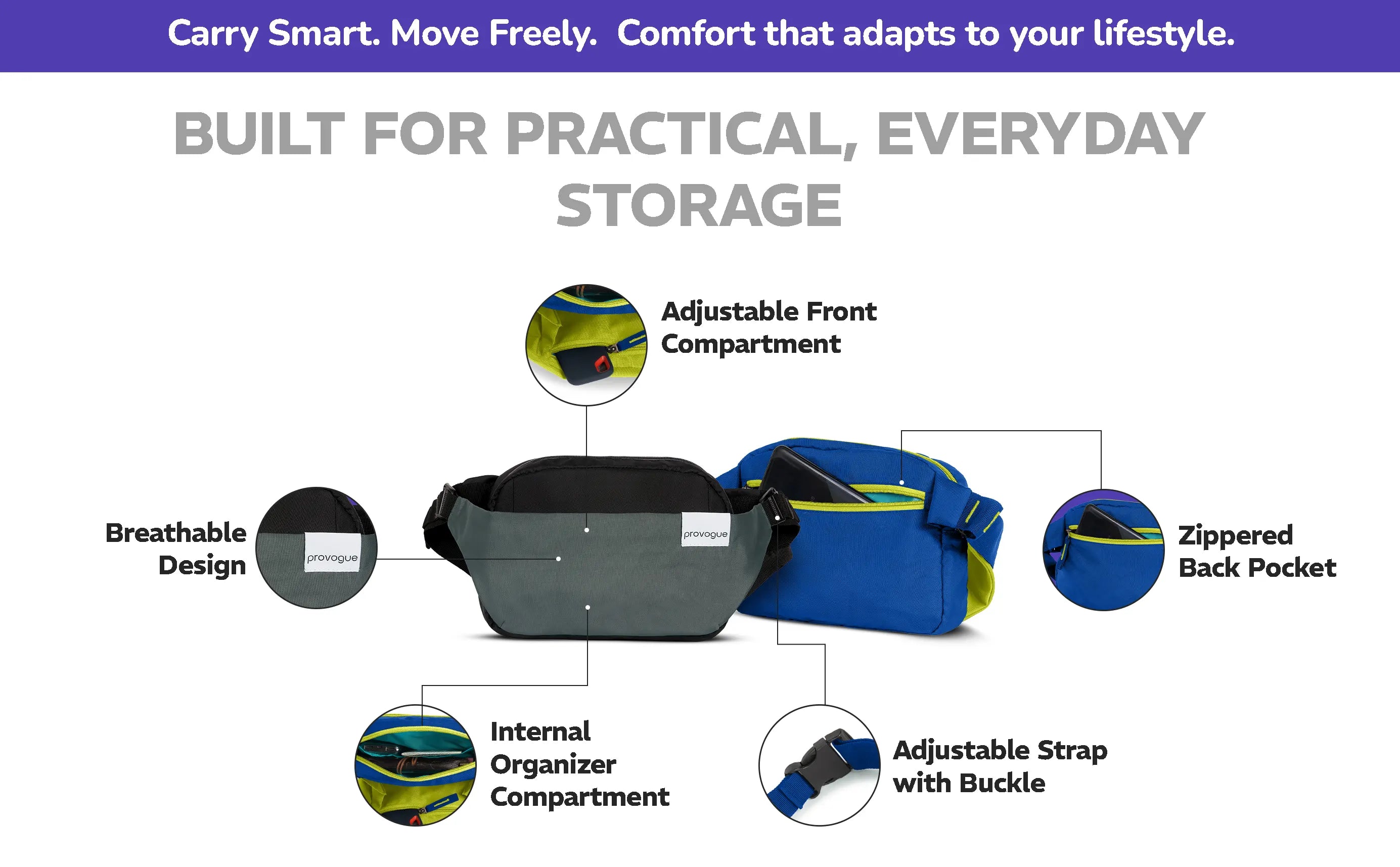 1-Year Warranty Included – Designed for long-term use and everyday reliability, the Provogue Rover Waist Bag comes with a 1-year warranty for complete peace of mind.