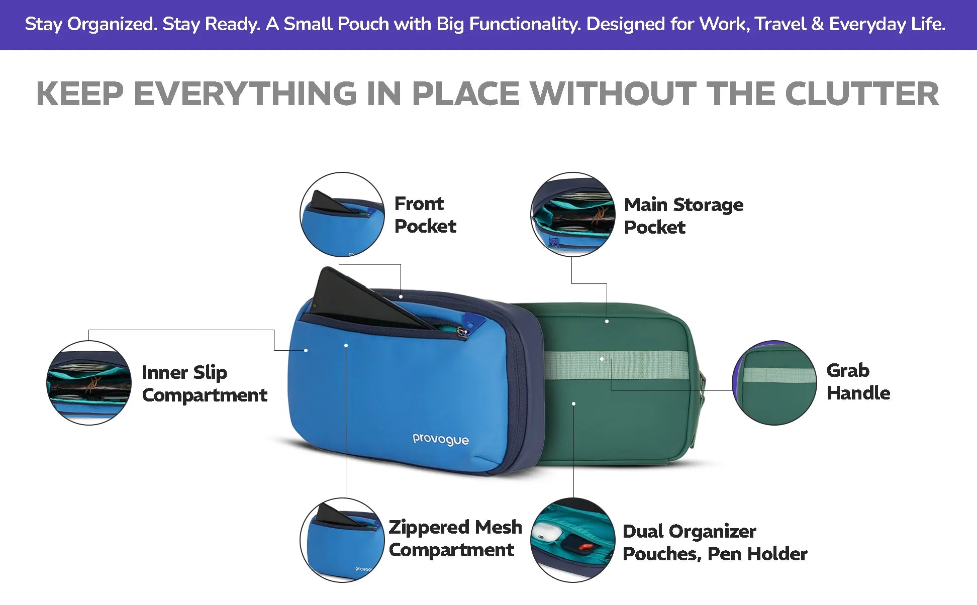 Ideal for cables, chargers, adapters, power banks, AirPods, hard drives, earphones, pens, and travel essentials — your all-in-one tech pouch.