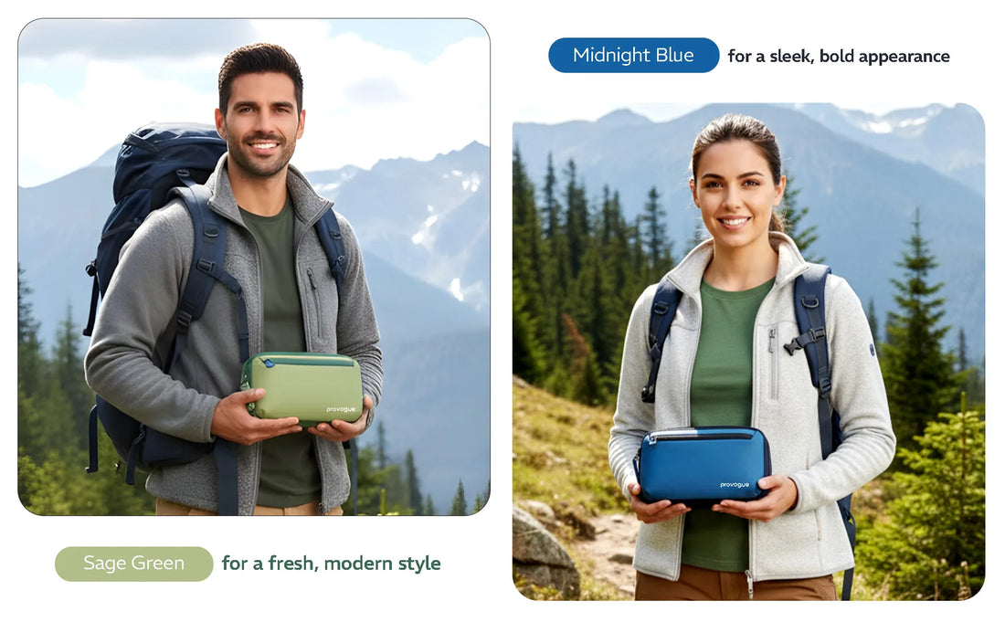 Available in classy Midnight Blue and Sage Green — clean, modern, and made to suit everyone’s daily style and travel gear.